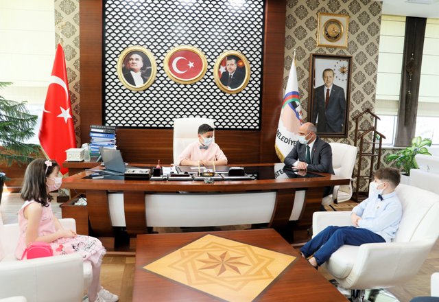 KOCAELİ (İGFA)- Körfez Belediye Başkanı Şener Söğüt, 23 Nisan Ulusal Egemenlik ve Çocuk Bayramı dolayısıyla koltuğunu çocuklara bıraktı. Körfezkent Emlak Konut İlkokulu 4. sınıf öğrencileri Arda Çınar, Meva Özcan ve Eymen Kılıçöz’ü makamında ağırlayan Başkan Şener Söğüt, koltuğu da Eymen Kılıçöz’e devretti. Koltuğa oturan Eymen Kılıçöz, ilk direktiflerini de başkan yardımcılarına verdi. İlçedeki spor tesis sayısının artması, yeni okul binalarının da yapılması talimatını veren Eymen Kılıçöz, pandemi dolayısıyla yapılan çalışmalardan dolayı da ekiplere teşekkür etti. Başkan Şener Söğüt ise, çocuklarla tek tek sohbet ederek, çocukların oturdukları, yaşadıkları, okudukları ilçenin geleceğini düşünmelerinin kendilerini mutlu ettiğini söyledi.