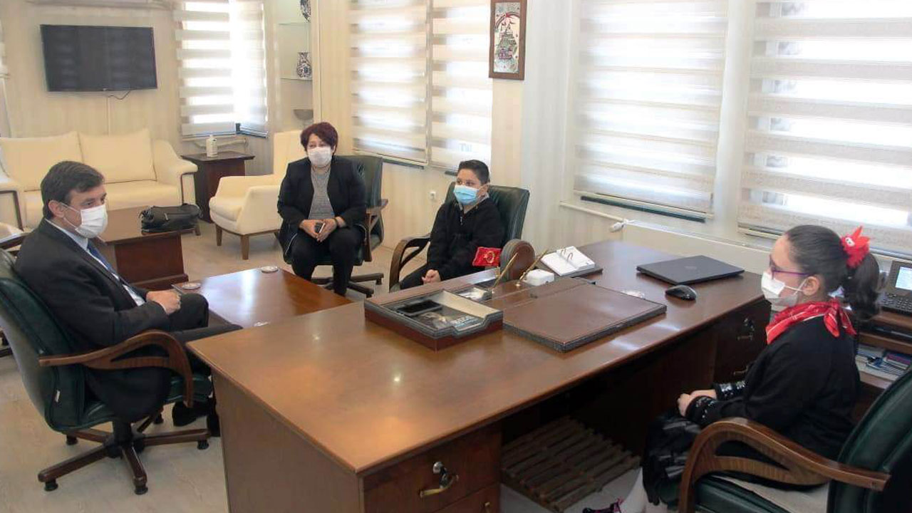 Bursa’da Mithatpaşa İlkokulu öğrencileri 23 Nisan Ulusal Egemenlik ve Çocuk Bayramı kutlamaları kapsamında İl Millî Eğitim Müdürü Sabahattin Dülger’e ziyarette bulundu.