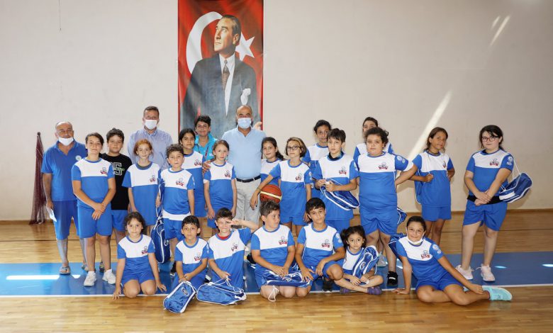 Bursa’nın Mudanya Belediyesi’nin düzenlediği Basketbol Yaz Spor Okulu’nun ilk dönem eğitimleri sürerken Başkan Hayri Türkyılmaz, genç basketbolculara forma ve çanta hediye etti.